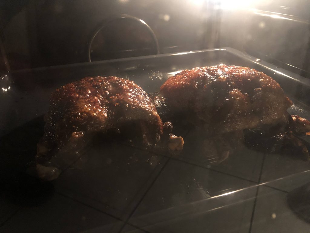 Zubereitungszeit: etwa 5 Stunden, davon 3 Stunden reine Bratzeit – man hat aber dazwischen viel Zeit, wo man nichts tun muss.